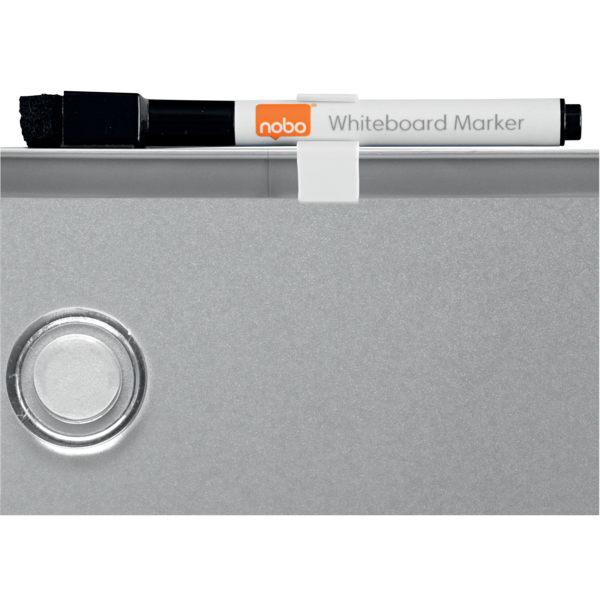 La Mini Pizarra Magnética Nobo con Marco Plateado Slim está fabricada con materiales de alta calidad, que incluyen superficie magnética y marco plateado estilizado. Además, incluye un clip porta rotulador para mayor conveniencia y 2 imanes para pizarra blanca. Sus dimensiones son 360x280 mm, lo que la hace perfecta para ser una pizarra de pared o portátil, según las necesidades del usuario.