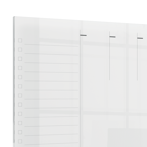 Para montar en la pared, aplica las almohadillas adhesivas en la parte posterior del planificador y colócalo en la posición deseada. Para usar en plano sobre el escritorio, simplemente colócalo sobre la superficie de trabajo y comienza a escribir. El planificador se suministra con un rotulador de pizarra para empezar a utilizarlo de inmediato.