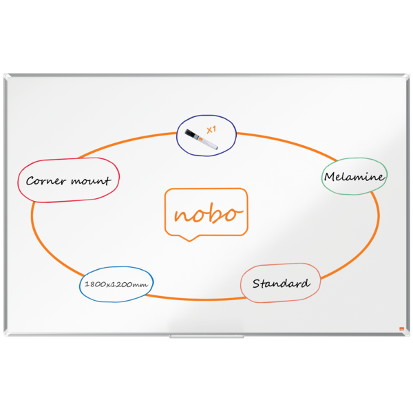 La Pizarra Blanca De Melamina Nobo Essence 1800X1200Mm Blanco es una pizarra de melamina no magnética con un marco de aluminio anodizado. Se utiliza para escribir con rotuladores y se fija a la pared desde las esquinas. Viene con una bandeja para rotuladores y su superficie permite un buen nivel de borrado para un uso esporádico.