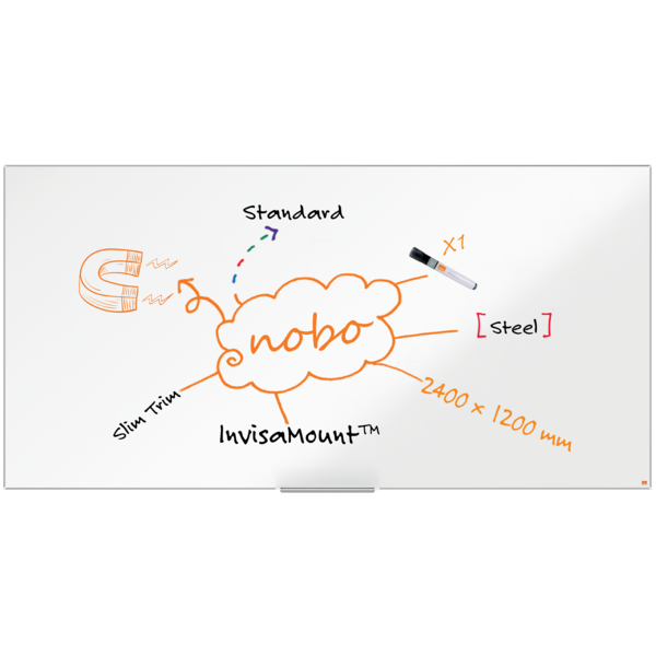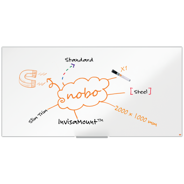 La pizarra magnética Nano Clean ™ es un tablero de escritura de alta calidad con una superficie magnética que permite la fijación de notas y documentos con imanes. Su marco fino y elegante contemporáneo aporta un aspecto moderno a cualquier entorno, ya sea en casa, en la oficina o en un salón de clases.