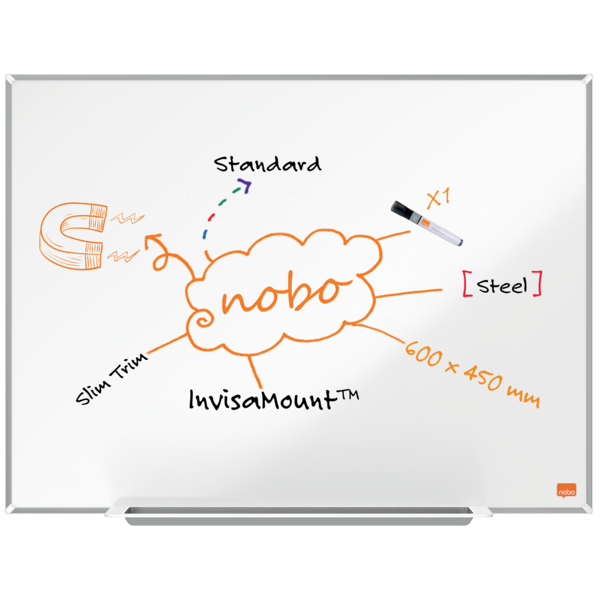 La pizarra magnética Nano Clean ™ se utiliza para escribir con rotuladores para pizarra blanca y para fijar notas y documentos con imanes. La elegante bandeja para rotuladores de pizarra permite guardar los rotuladores y los borradores de forma ordenada y accesible. El sistema InvisaMount™ facilita la instalación, lo que permite colgar la pizarra de forma segura en la pared. Los soportes de sujeción están cuidadosamente ocultos tras el tablero, lo que le da un aspecto limpio y elegante.
