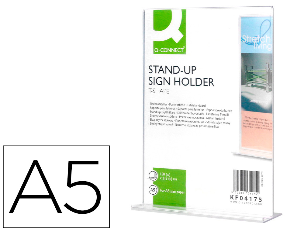 Expositor Sobremesa Q-Connect Con Forma De T Metacrilato Tamaño A5 A Dos Caras