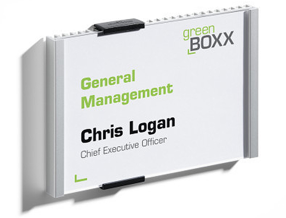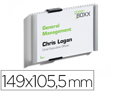 Este identificador portanombre está diseñado para ser colocado en puertas, su durabilidad y resistencia son ideales para un uso cotidiano. La placa acrílica antirreflectante garantiza una fácil visualización del nombre en cualquier tipo de iluminación.