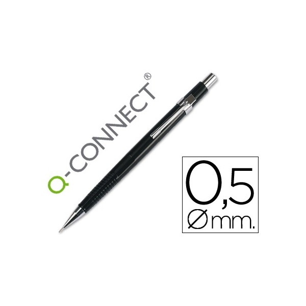 El portaminas Q-Connect 0,5mm con 3 minas es un instrumento de escritura y dibujo que permite realizar trazos precisos y limpios. Su diseño ergonómico y su cuerpo negro con clip negro lo hacen ideal para un uso diario en la oficina, escuela o en el hogar.