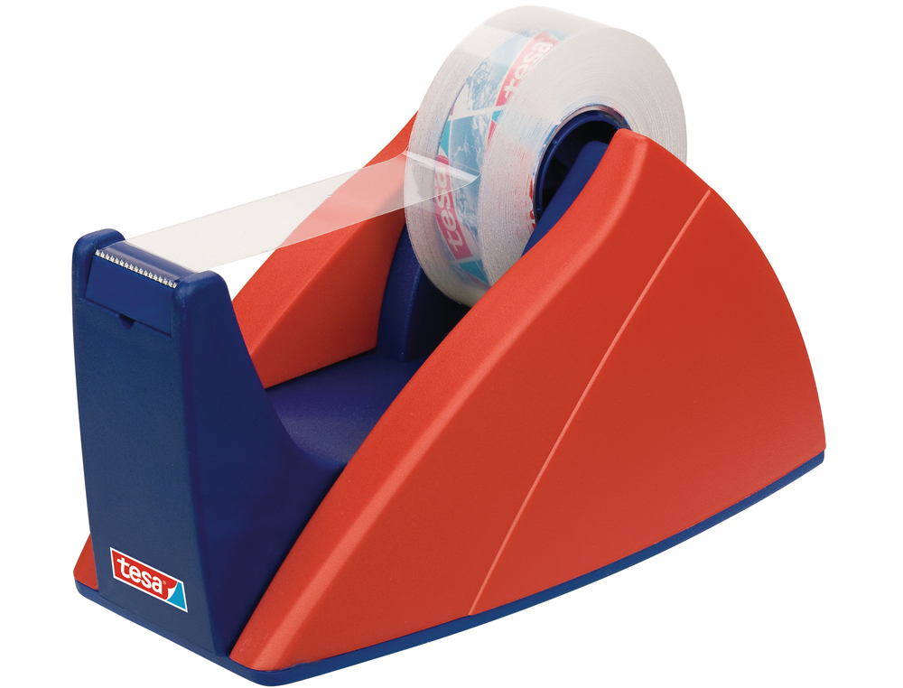 El Portarrollo Sobremesa Tesa es un dispensador de cinta adhesiva con cuchilla de corte recto, diseñado para cintas de 33 metros de longitud. Está disponible en colores azul y rojo, lo que lo hace fácil de identificar y utilizar en entornos de trabajo.