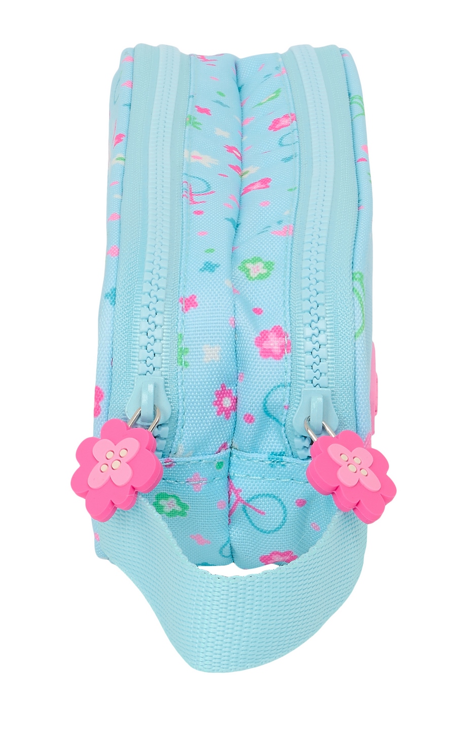 Dos compartimentos separados con cremalleras. Tiradores en los cursores para facilitar su apertura. Asa de mano en la parte lateral. Material Reciclable.