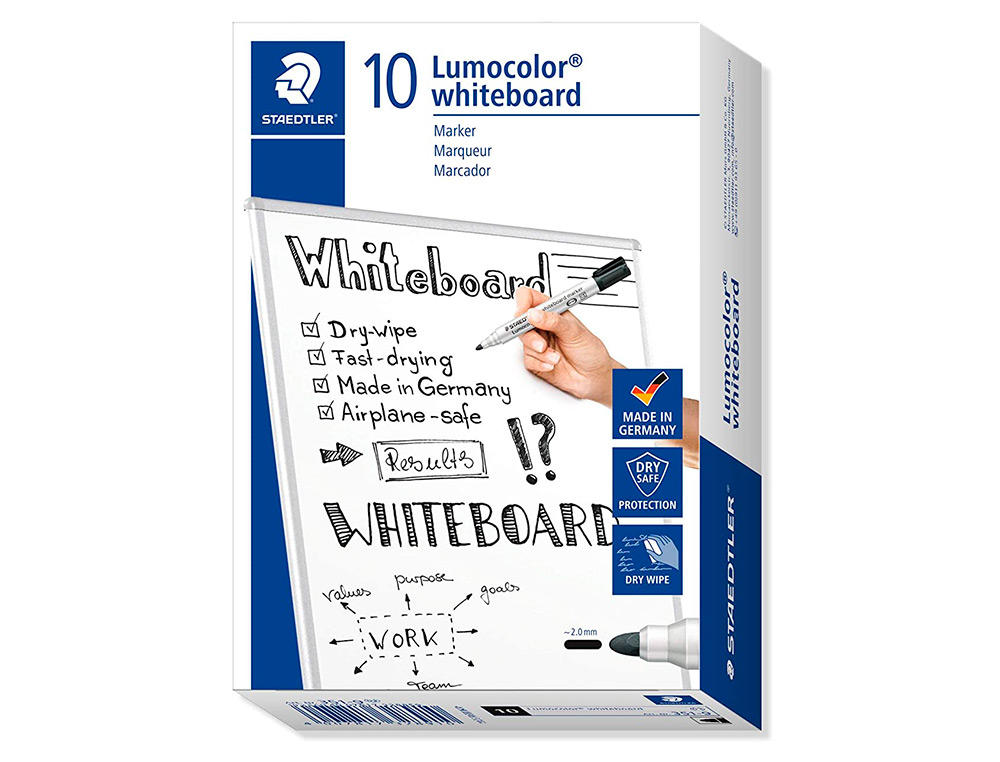 El rotulador Staedtler Lumocolor 351 es un marcador diseñado específicamente para su uso en pizarras blancas. Con una punta redonda de 2 mm y recargable, este rotulador proporciona trazos precisos y duraderos en color negro.