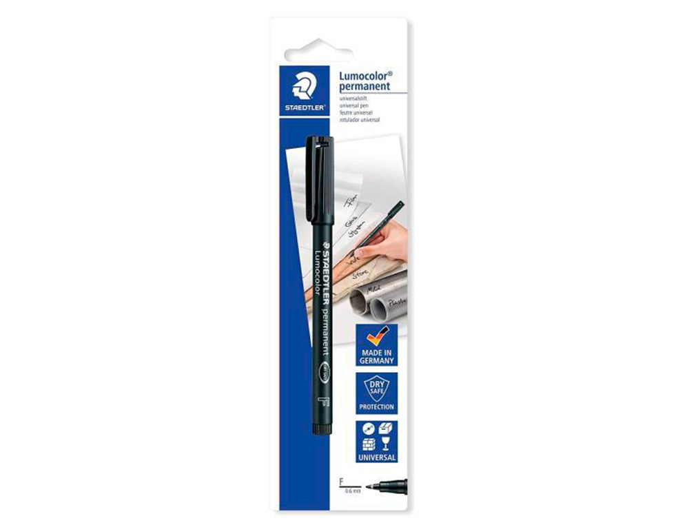 El rotulador Staedtler Lumocolor Retroproyeccion es una herramienta de escritura permanente con punta fina redonda de 0.6 mm, ideal para utilizar en retroproyecciones y otras superficies.