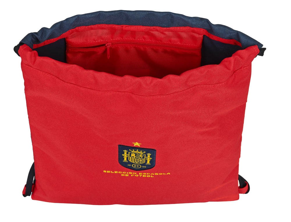 El saco plano está confeccionado con materiales resistentes y duraderos, garantizando su uso a largo plazo. Además, presenta el diseño oficial de la Selección Española de Fútbol, lo que lo convierte en un accesorio para demostrar tu apoyo al equipo nacional.
