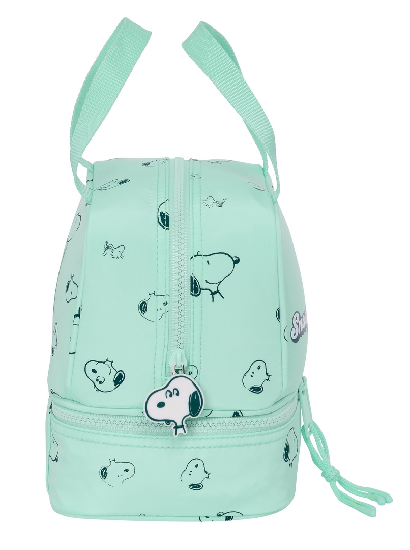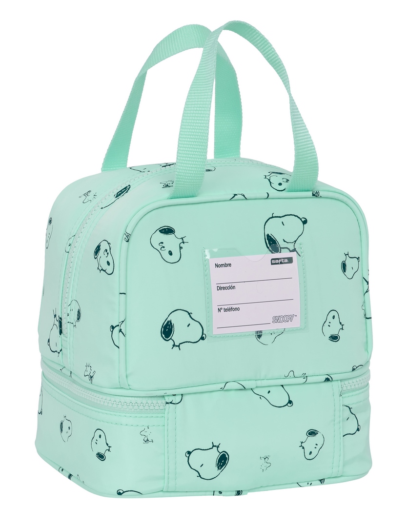Este portameriendas está fabricado con materiales resistentes y de alta calidad, garantizando la conservación y frescura de tus alimentos. Su diseño con la imagen de Snoopy lo hace atractivo y divertido, perfecto para niños y adultos por igual.