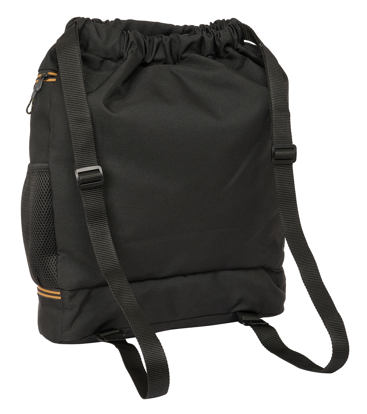 Bolsillo interior con cremallera. Bolsillos laterales de red portabotellas. Compartimento inferior con cremallera de apertura en 2 direcciones para facilitar el acceso. Bolsillos laterales con cremallera. Closing with webbings. Adjustable shoulder webbings.