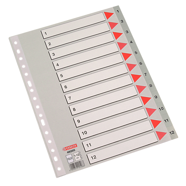 - Índices numéricos de plástico Gris 1-12 Folio