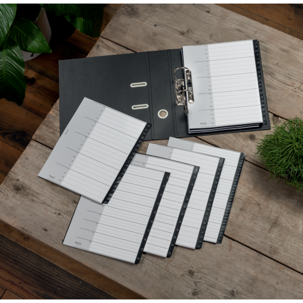 El Índice Leitz Recycle es un separador premium fabricado con plástico reciclado de alta calidad. Este índice es el complemento perfecto para una organización clara de documentos A4, ofreciendo 20 pestañas alfabéticas A-Z para facilitar la clasificación y el seguimiento de notas importantes. Este producto es una excelente opción para el uso en el hogar, la escuela o la oficina, y está diseñado para durar, contribuyendo a un entorno de trabajo más ordenado y amigable con el medio ambiente.