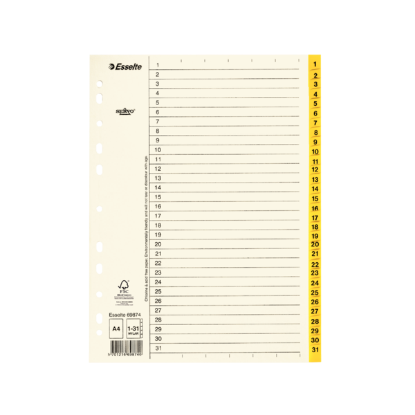 Con un diseño fácil de usar y duradero, estos Índices numéricos de papel Mylar Amarillo 1-31 A4 son la elección ideal para organizar sus documentos de manera eficiente y profesional.