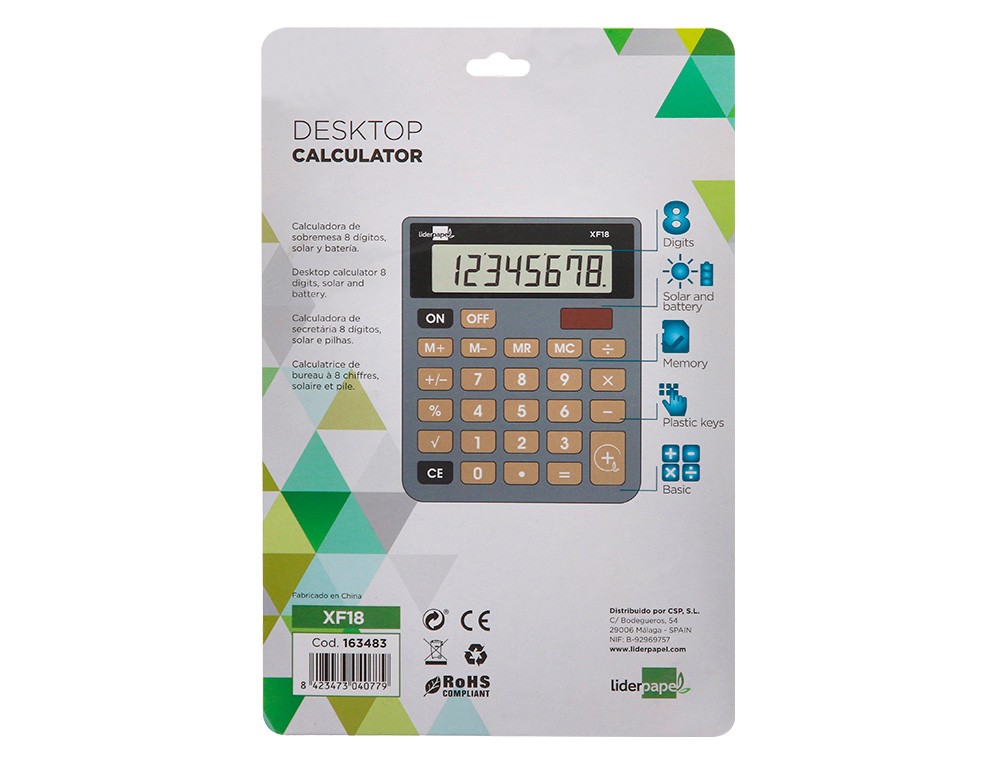 Entrega en 24h Calculadora liderpapel sobremesa xf18 8 digitos solar y pilas color gris 127x105x24 mm