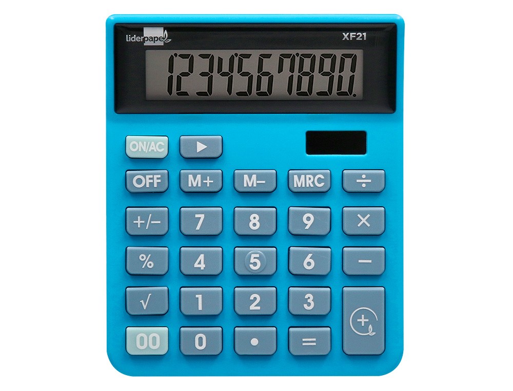 Entrega en 24h Calculadora liderpapel sobremesa xf21 10 digitos solar y pilas color azul 127x105x24 mm