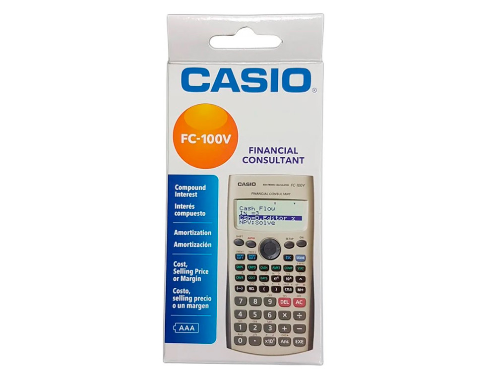 La Calculadora Casio Fc-100V es una calculadora financiera de alta calidad con un diseño moderno y compacto. Con capacidad para mostrar hasta 4 líneas de cálculos y con 10+2 dígitos, esta calculadora es ideal para realizar cálculos financieros con precisión y rapidez. Además, cuenta con almacenamiento flash para guardar datos importantes y realizar cálculos de ganancias de manera eficiente. Su tapa protectora la hace perfecta para llevarla a cualquier lugar sin preocuparse por daños.