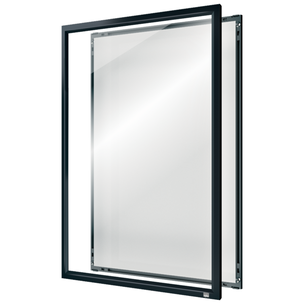 Este porta pósters montado en la pared es una solución innovadora para exhibir contenido de tamaño A3 de manera elegante y segura. Cuenta con un marco de clip de perfil bajo, esquinas biseladas sin fisuras y un mecanismo de cambio de contenido realmente innovador.