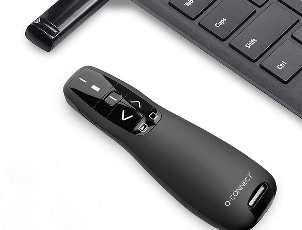 Para utilizar el Puntero Laser Q-Connect, simplemente conecta el receptor USB a tu computadora portátil o de escritorio. Una vez que el dispositivo esté conectado, podrás controlar la presentación con los 5 botones del puntero laser. Avanza o retrocede diapositivas, activa el puntero laser para señalar puntos clave y controla el volumen de la presentación con facilidad.