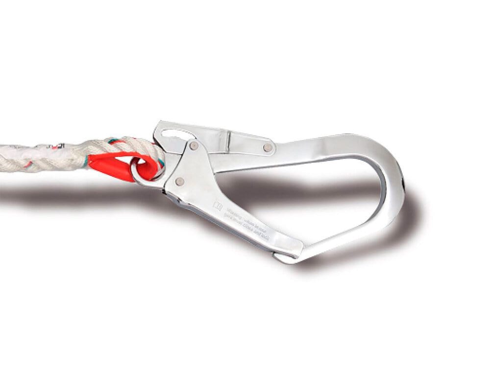 Esta cuerda anticaídas está fabricada con materiales resistentes que cumplen con las normativas de seguridad. El gancho de 50 mm proporciona una sujeción firme y segura al punto de anclaje, mientras que la cuerda brinda la flexibilidad necesaria para realizar distintas tareas en altura.
