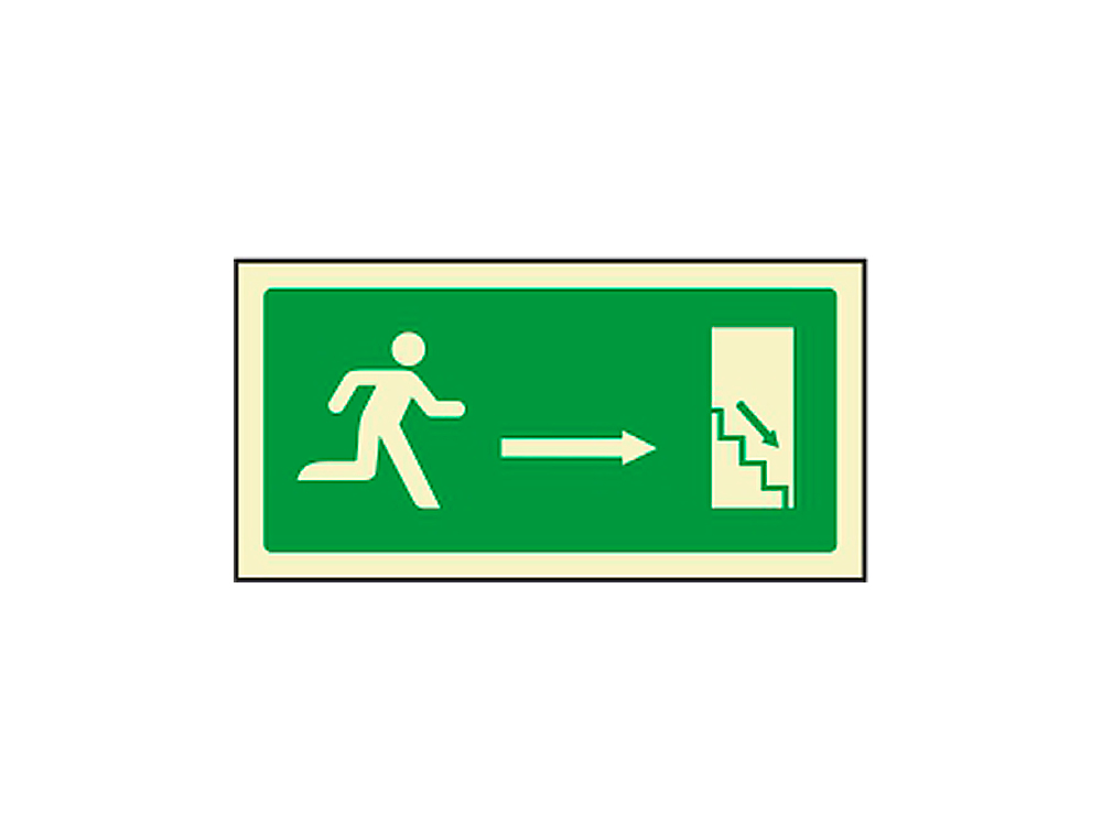 El Pictograma Syssa Señal De Salida Emergencia Derecha Escalera Bajando en PVC Fotoluminiscente 320x160mm es un dispositivo de señalización diseñado para indicar la salida de emergencia en caso de un evento adverso. Su material fotoluminiscente garantiza su visibilidad incluso en condiciones de baja iluminación, lo que lo hace ideal para su uso en entornos de trabajo o edificios.