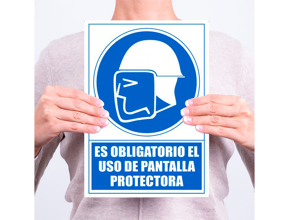 Este producto es un pictograma de archivo fabricado en PVC de color azul, con unas dimensiones de 210x297 mm. Es obligatorio su uso junto a una pantalla protectora para garantizar la seguridad en el lugar de trabajo.